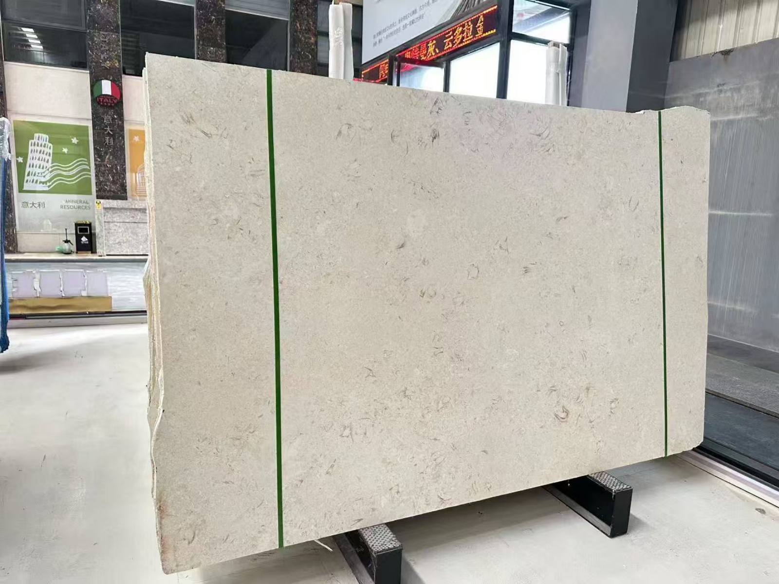 This limestone slab, Crafted directly from high-quality quarries, this limestone offers stable color consistency and a smooth finish that enhances any space. It is commonly used for wall cladding, flooring, bathroom projects, hotel lobbies, and other architectural applications that require a warm and natural stone aesthetic.