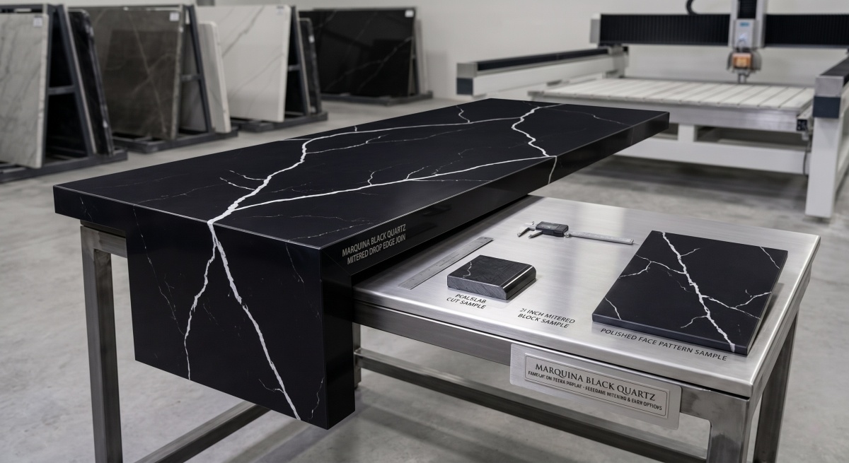 Buyers usually choose this kind of slab when they want the countertop to become a design element, not just a working surface. A black quartz with this level of contrast can help a showroom wall or a finished island photograph well, but it still needs to stay commercially usable; this pattern works because the veins are bold without turning chaotic. For distributors, it can attract attention faster than many mid-tone quartz colors, especially when customers ask for a Nero Marquina direction but want the consistency and supply logic of quartz.