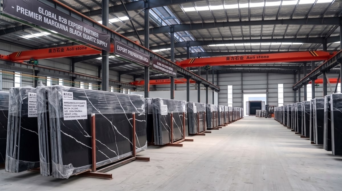 Contact Aoli Stone for slab photos, quotation support, sample discussion, and project supply details for Marquina Black Quartz.