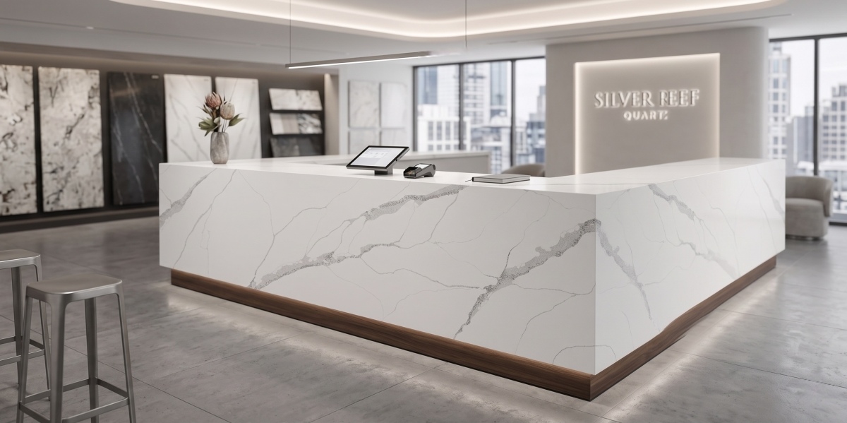 Buyers choose Silver Reef Quartz because it gives them a bright white surface with stronger visual character than a plain slab, while remaining more controlled and more practical than highly dramatic statement patterns. It is a good fit for clients who want a white-and-grey quartz design that feels premium, current, and commercially usable.